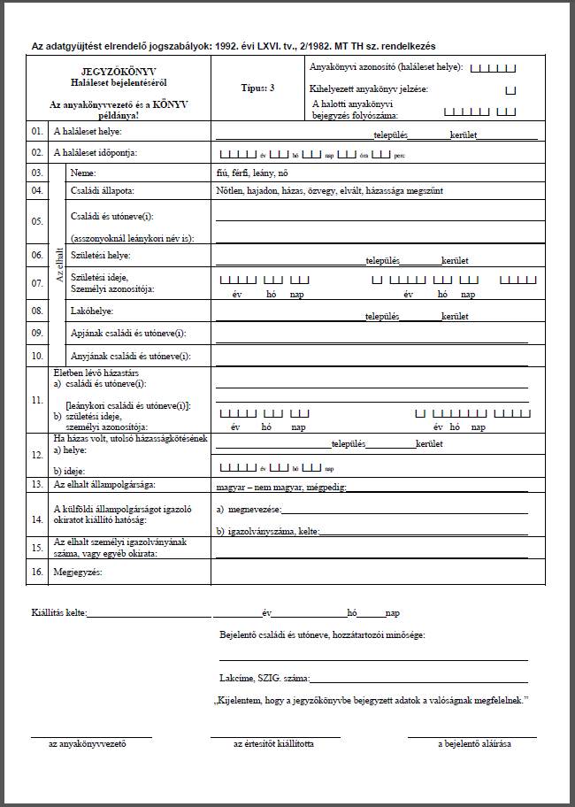 Az adatgyüjtést elrendelő jogszabályok: 1992. évi LXVI. tv., 2/1982. MT TH sz. rendelkezés