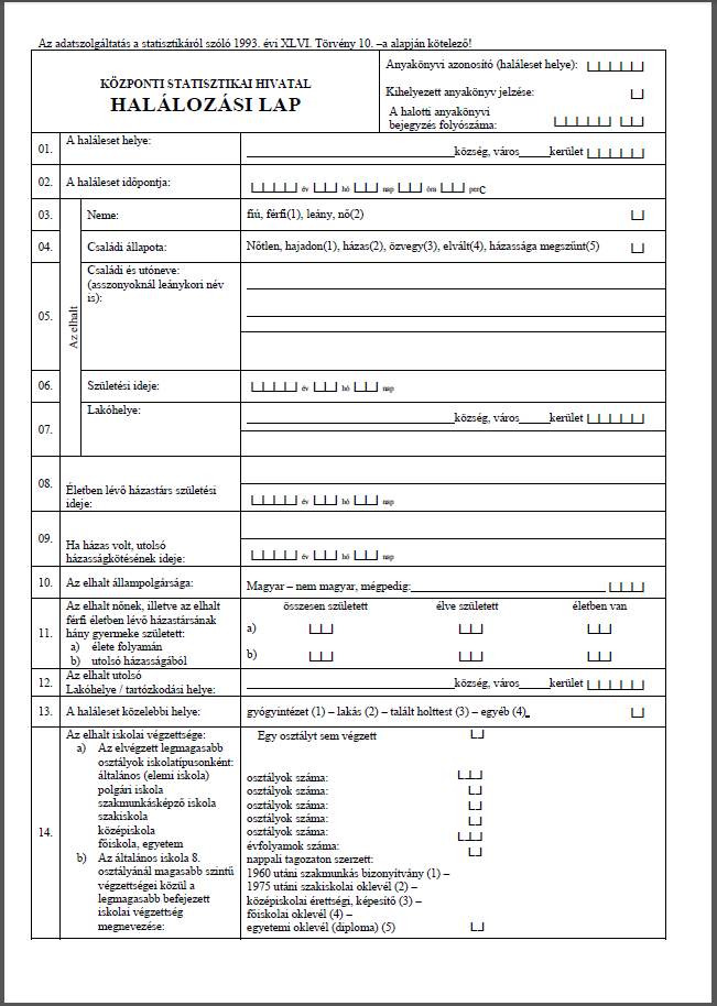 Központi Statisztikai Hivatal: Halottvizsgálati bizonyítvány